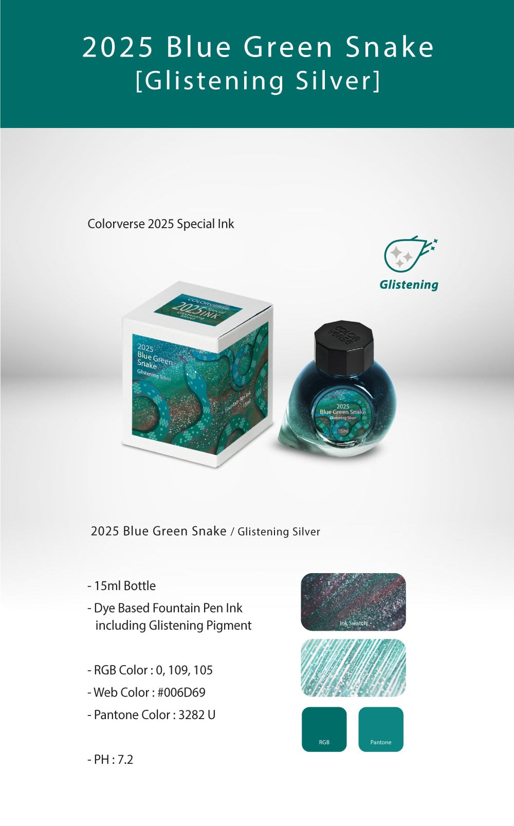 Colorverse | 2025 Blue Green Snake | Standard | Fountain Pen Ink | Shiny Silver | 15ml