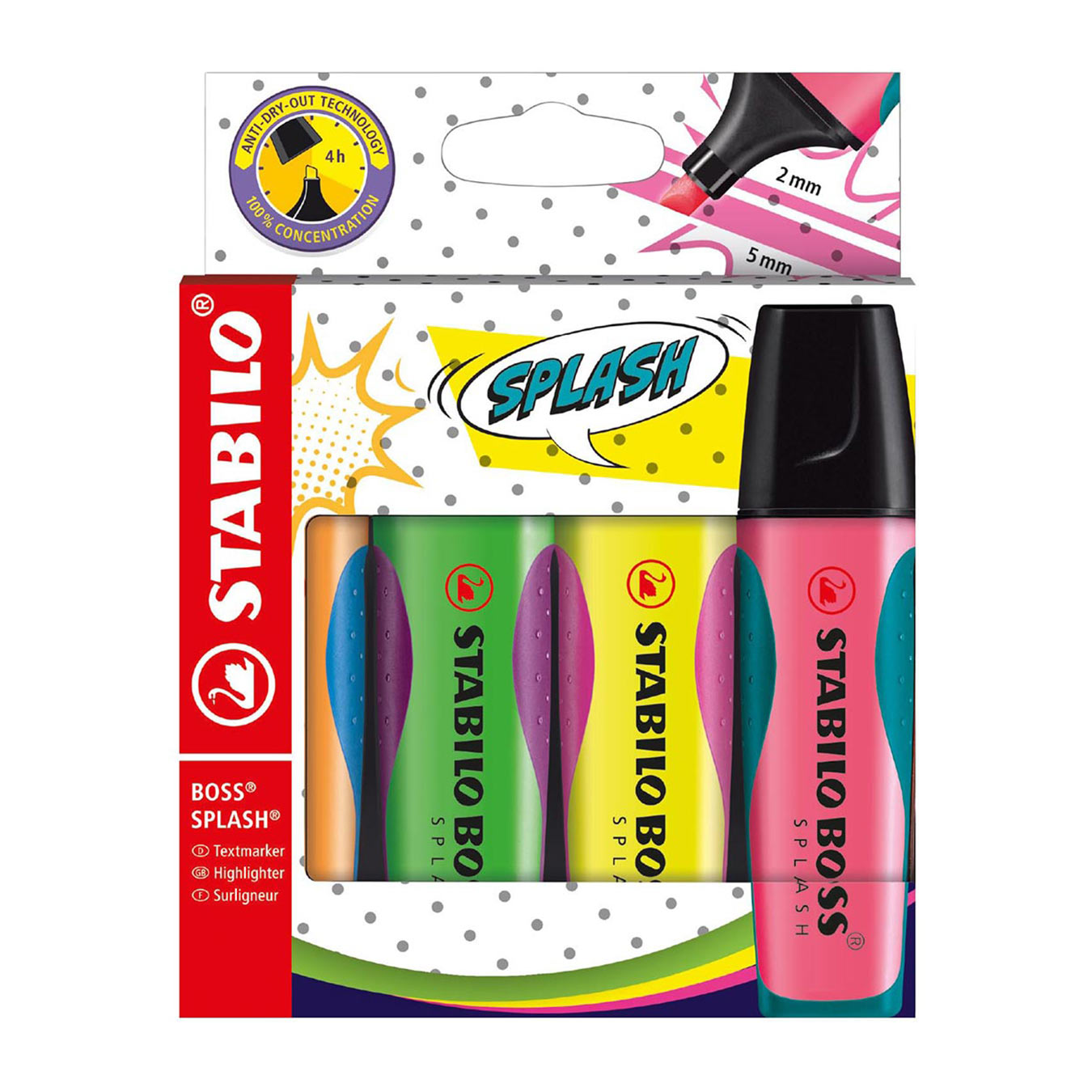 Stabilo | Boss Splash | Highlighter | Wallet of 4 | Assorted Colours