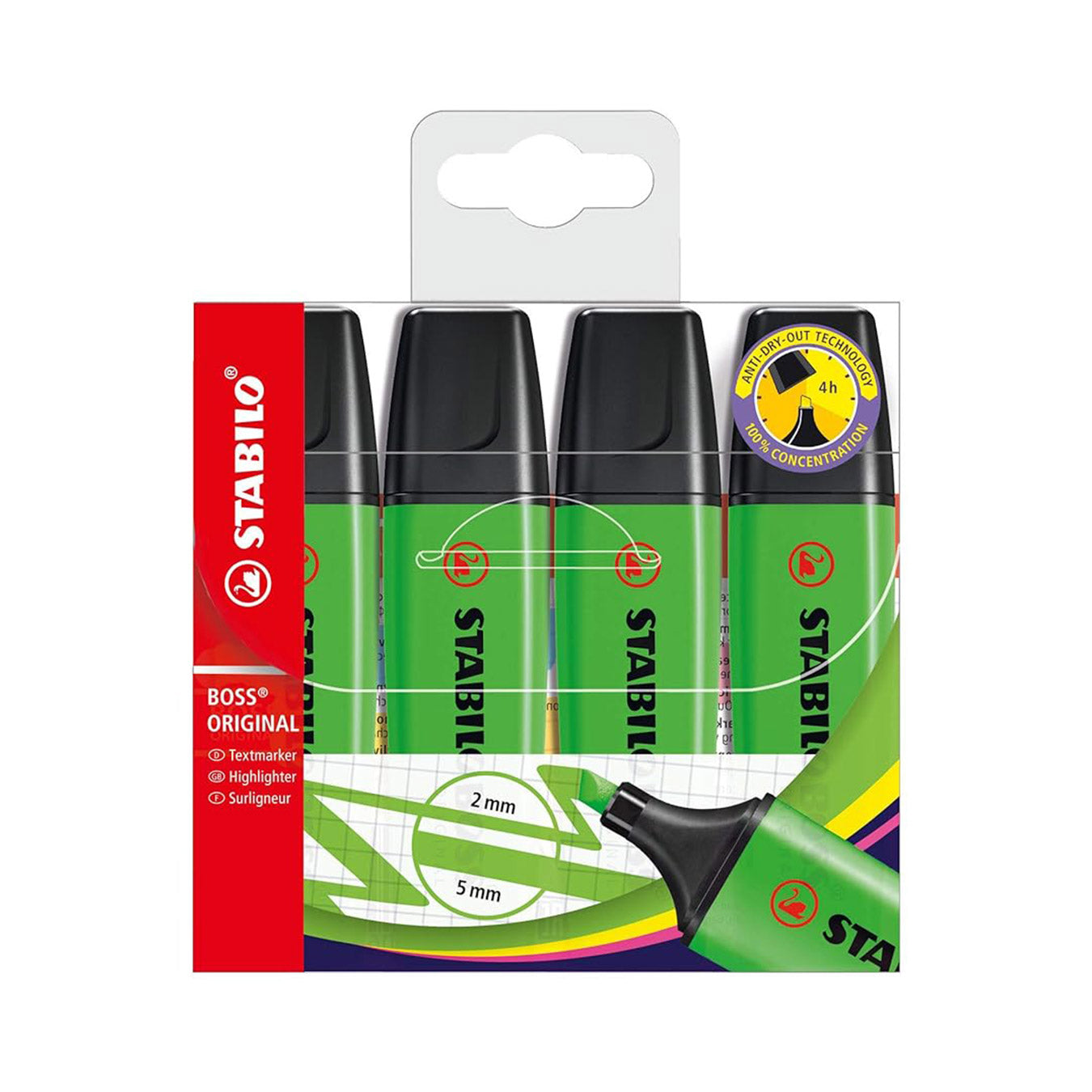 Stabilo | Boss Original | Green | Pack of 4 | Highlighter Pen