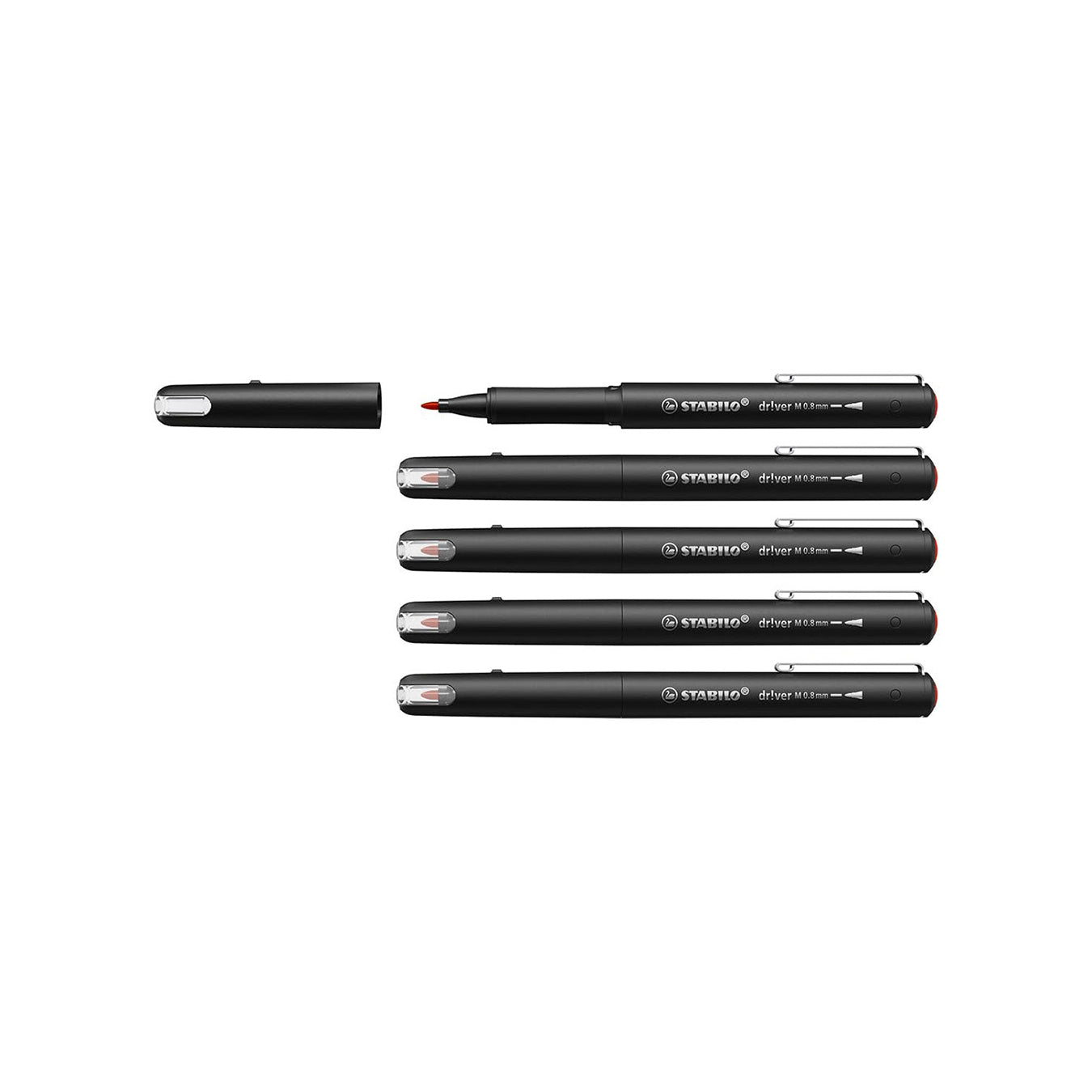 Stabilo | dr!ver Series | Premium Fineliner | Medium | Pack of 5 | Red