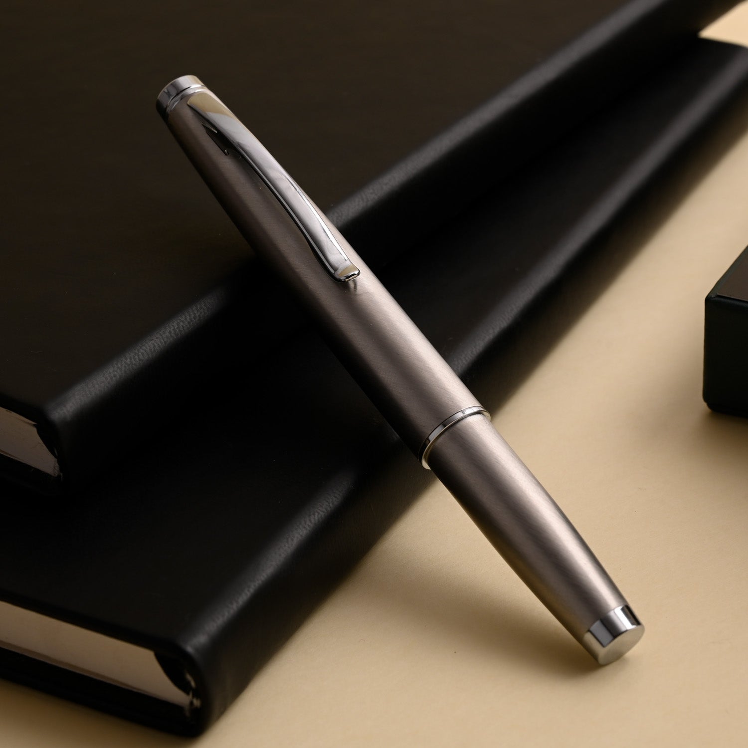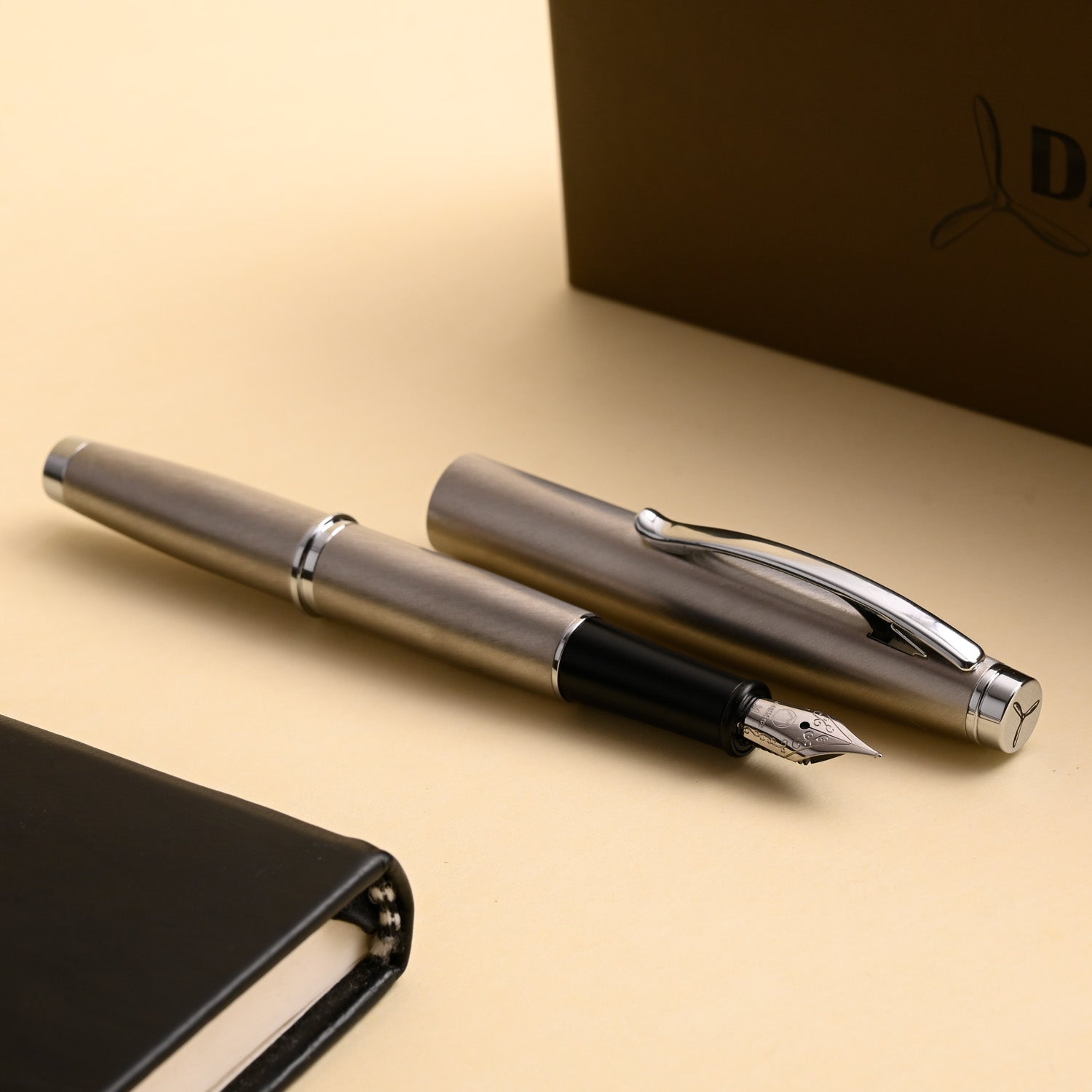 With its sleek stainless-steel body, polished chrome trims, and comfortable grip, the Dakota brings an industrial elegance to the art of writing. The pen’s smooth-flowing stainless steel nib glides effortlessly across paper, offering a consistent, controlled ink flow that satisfies both beginners and seasoned pen enthusiasts.