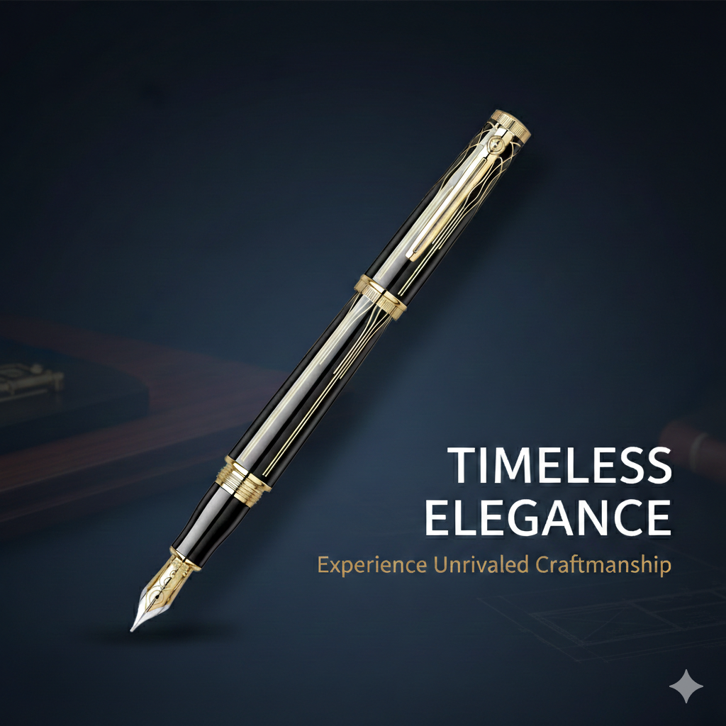Scrikss Heritage Fountain Pen Medium Nib - Glossy Black GT