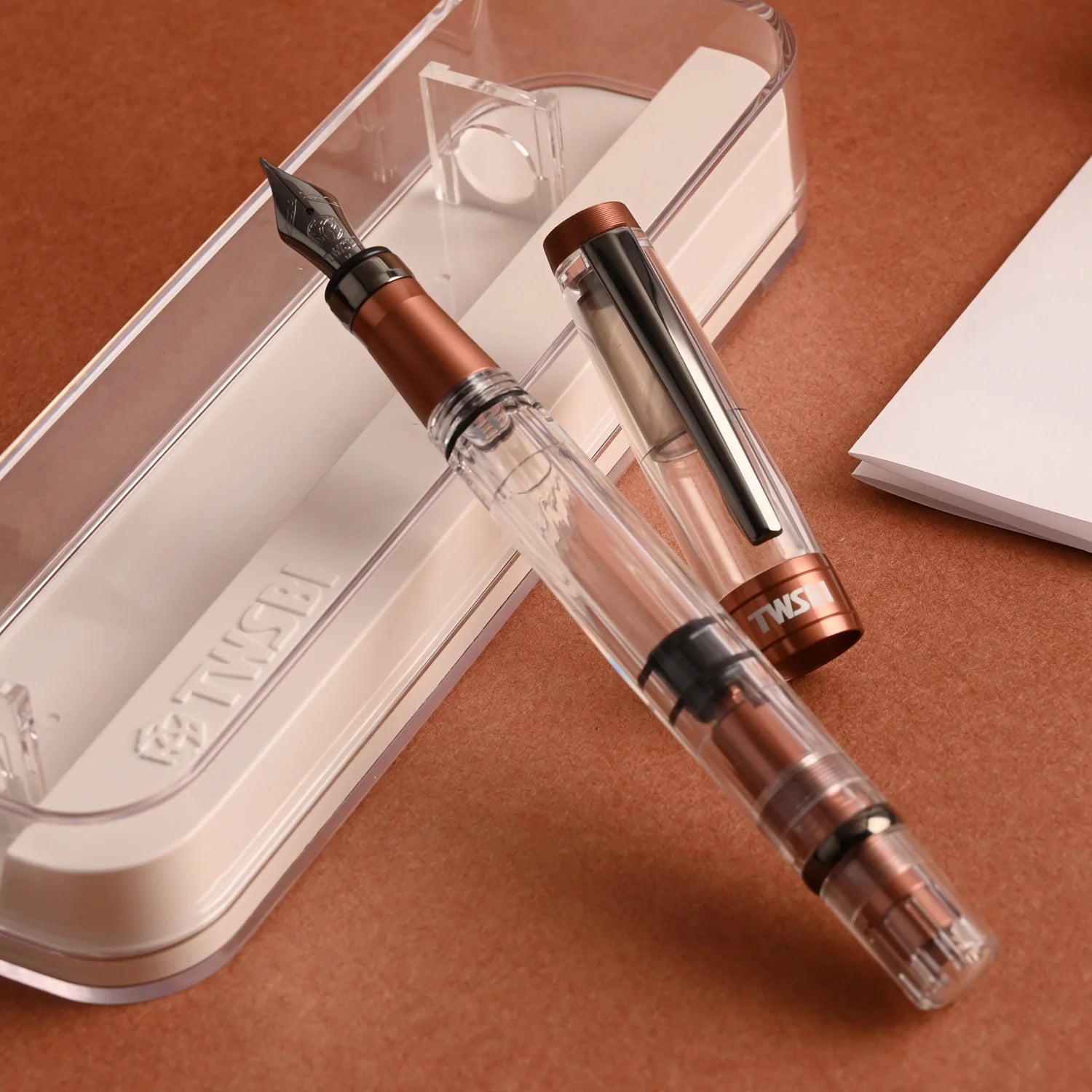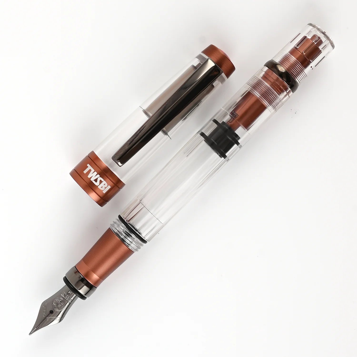 • TWSBI Diamond 580, a classic fountain pen with a piston ink-filling system.