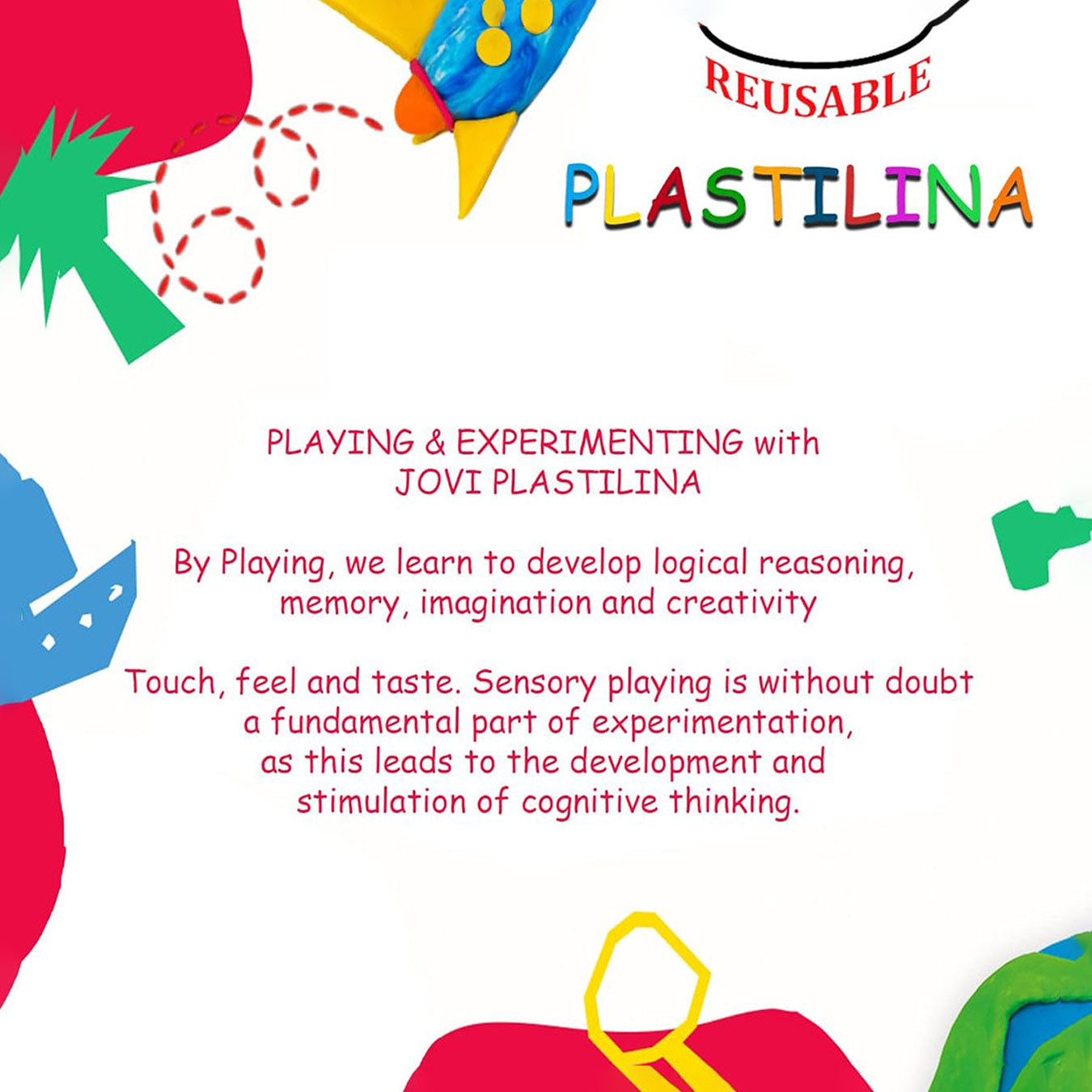 Jovi Plastilina Orange Pink Flesh Light Green Dark Blue Black Non-Drying Non-Toxic Modelling Clay for Art & Craft Pack of 6 Bars 50gms Each Fine Motor Skills Moulding Pottery Sculpting with Dough