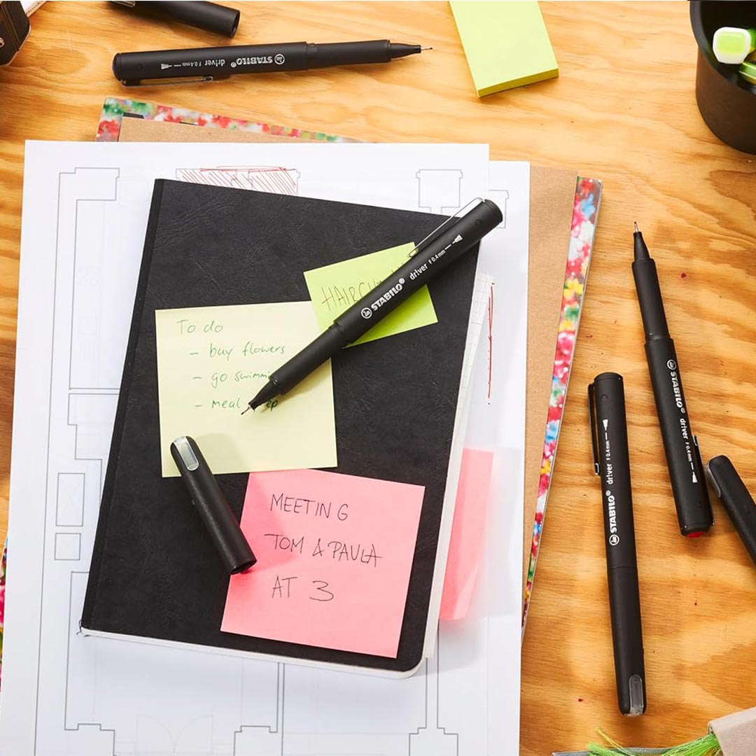 Stabilo | dr!ver Series | Premium Fineliner & Felt Tip | Pack of 4 | 0.4 MM | Black, Blue, Green, Red