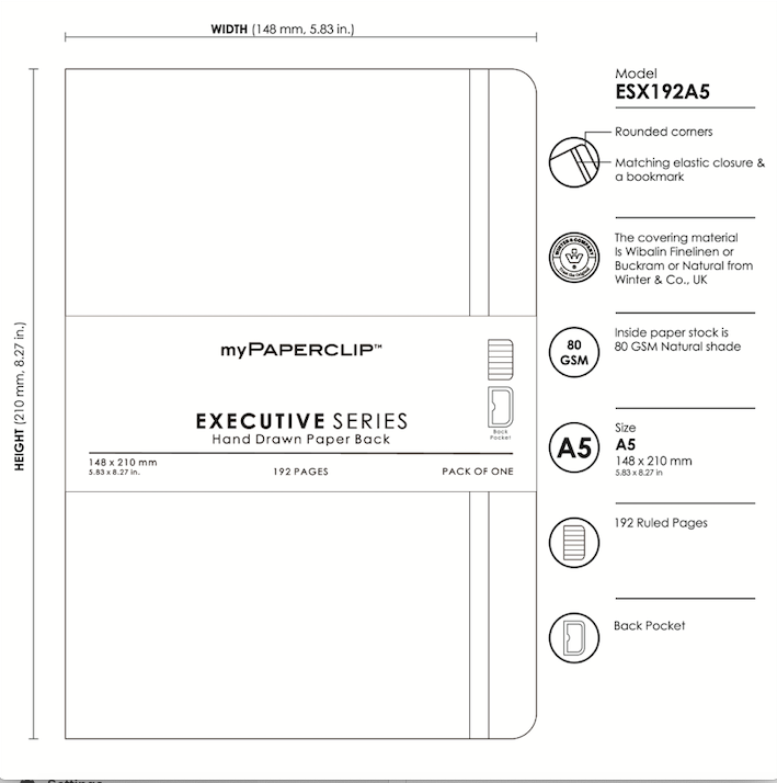 The Soft Cover NoteBook has flexible yet sturdy cover. The book is section thread bound and has paper cover with rounded corners, an elastic closure, a bookmark and an expandable back pocket.