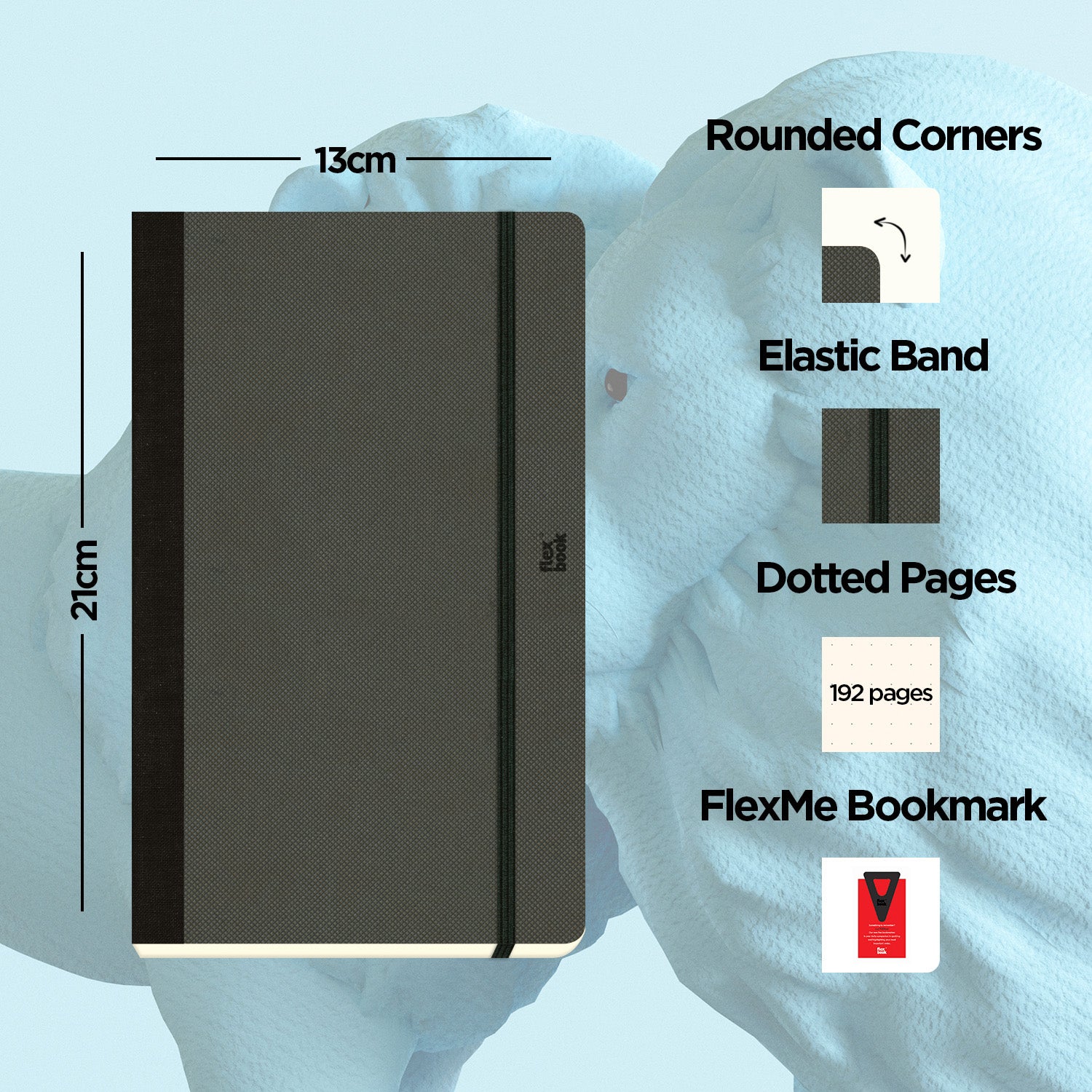 Flexbook | Dotted | Medium A5 Size Notebook | Off Black | Adventure Series