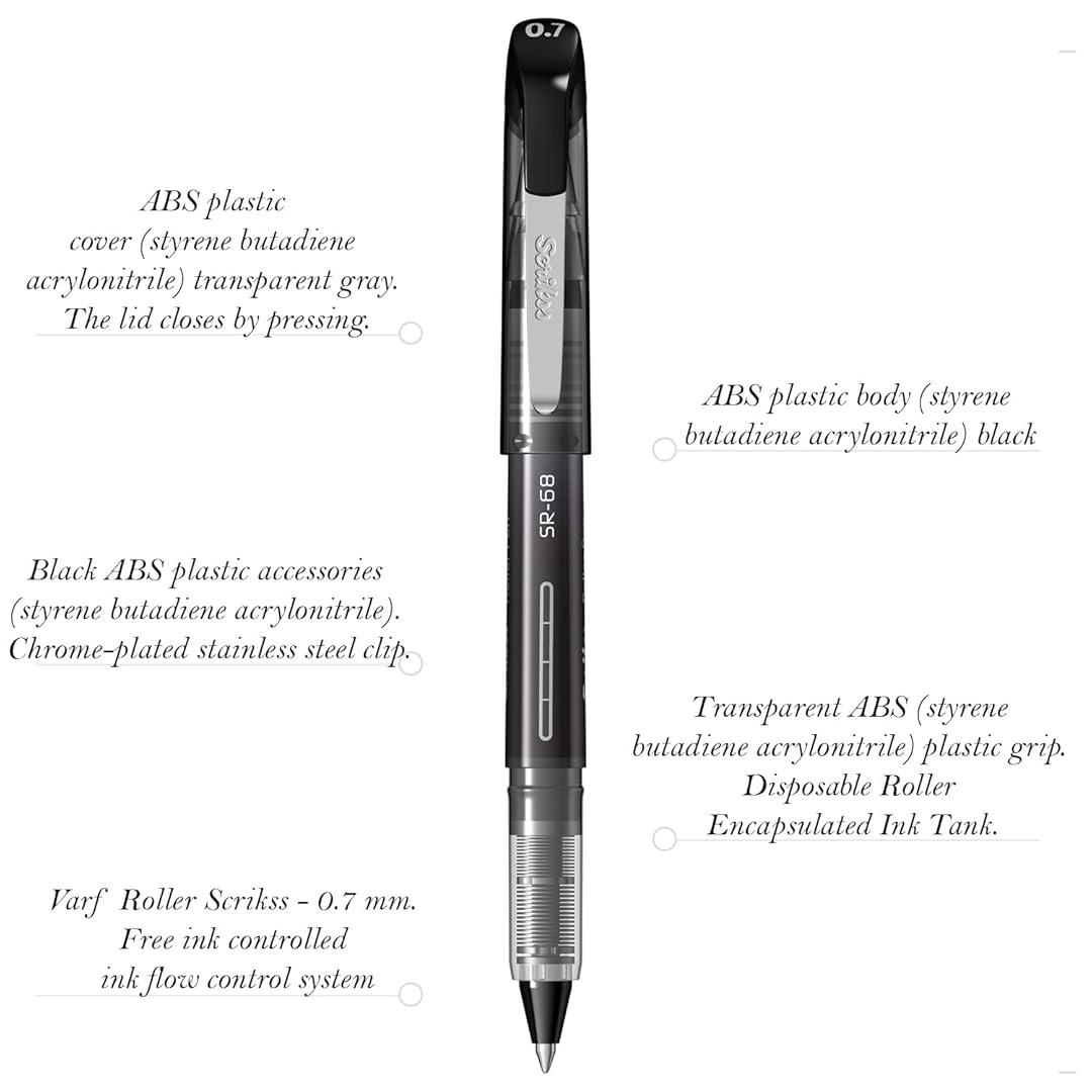 Scrikss SR-68 0.7mm Black Rollerball Pen - Pack of 12
