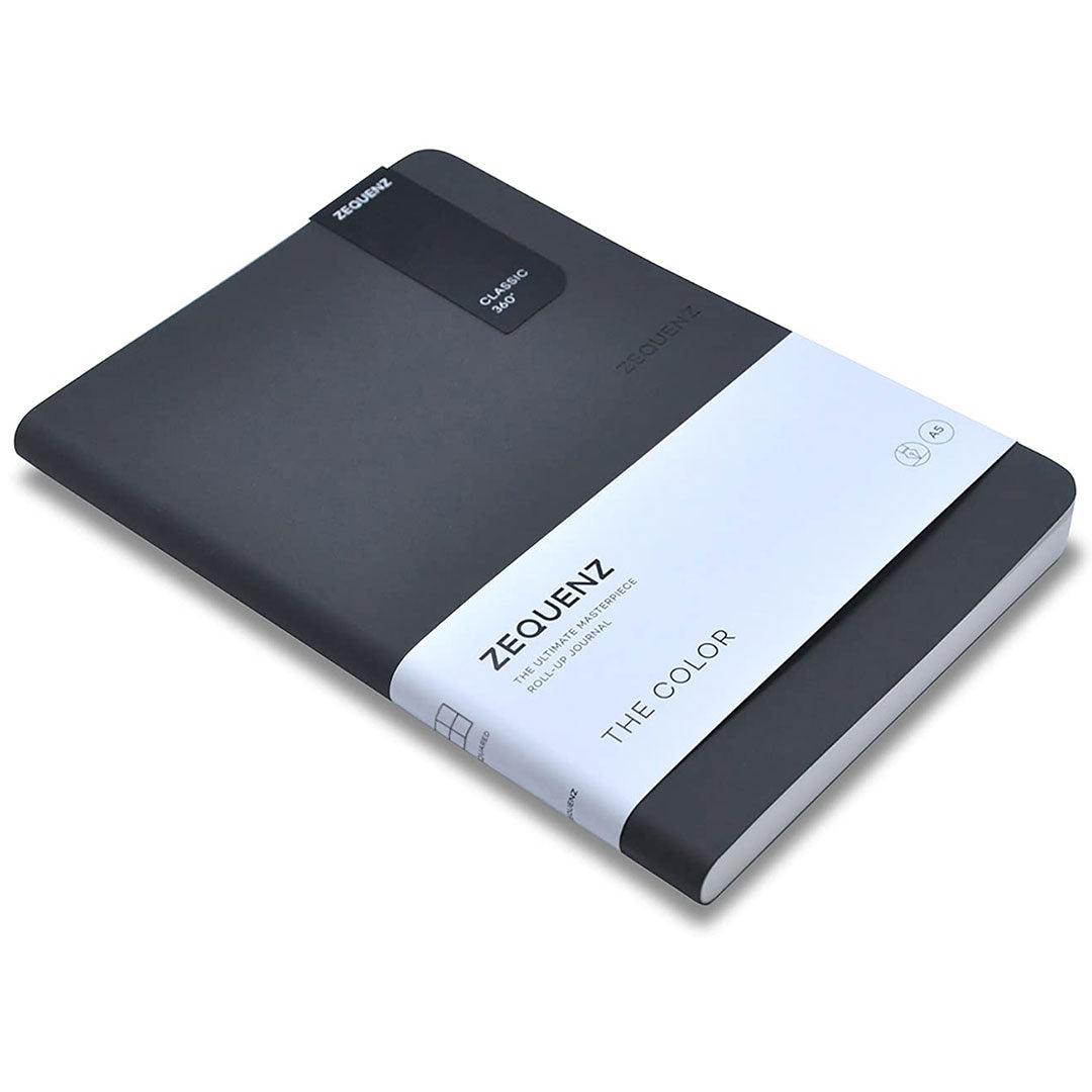 Zequenz A5 Size Storm Grey Slim Notebook Squared Acid Free Paper 200 Pages 80GSM 360 Degree Flexibility 100% Handmade Fountain Pen Friendly Color Series Bookmark Included